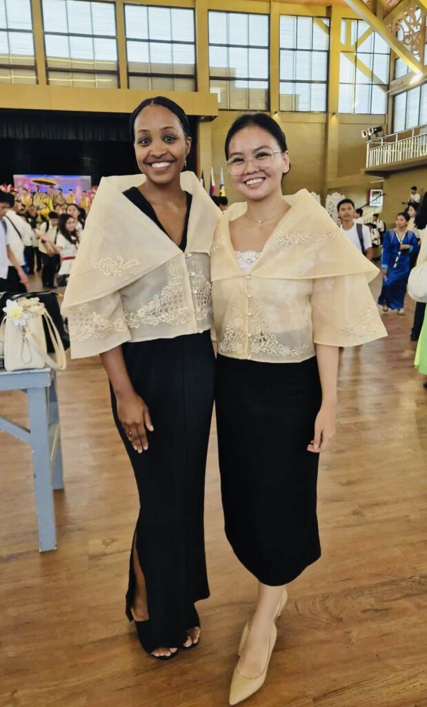 Buwan Ng Wika celebration. Abby and I posing in our beautiful Filipiniana tops.